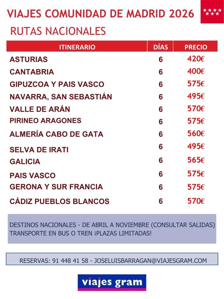 Recorridos por destinos de toda España
