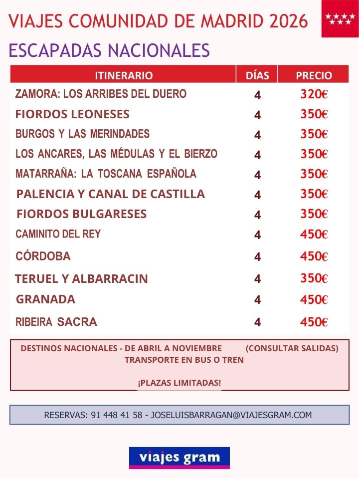 La Comunidad de Madrid te invita a disfrutar de sus escapadas nacionales 2026, pensadas especialmente para ti.